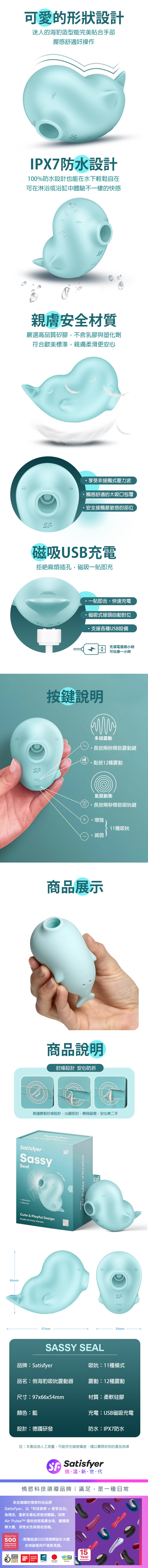 品名:Satisfyer|Sassy Seal|俏海豹 陰蒂吸吮震動器
